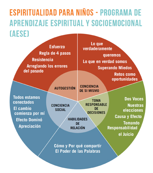 Espiritualidad para Niños es un programa entretenido y autoguiado que anima a los niños a reflexionar sobre sus acciones, a ver los desafíos como oportunidades, para desarrollar la autoestima, y para activar el deseo de hacer una diferencia en el mundo que les rodea.